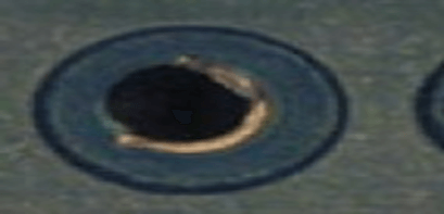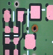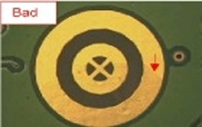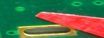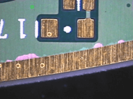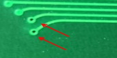 1.孔环压扁不影响孔径可接受 2.测试点压扁不能超出其PDA之20% 3.SMD压扁不影响PAD间距之20%可接受 | ![]() | |