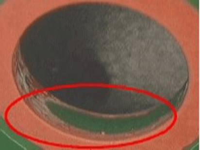 大铜面周边大小 大铜面周边油墨分层NG 孔周边单一轻微现象OK | ||||