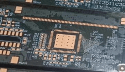 1.凹点/凹坑≤0.8mm,每面总共受影响的板面积≤5%可允收 2.焊盘或 IC、BGA 位置不接受基材凹痕 | ![]() | |