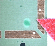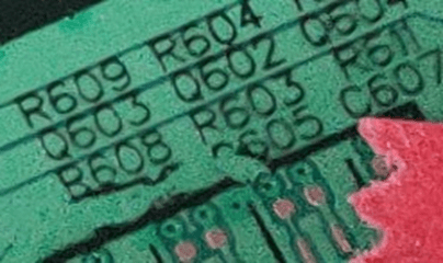 1)参照客户要求。 2)客户无要求: 允许防焊修补(修补后需满足外观标准): 3x3mm以内允收 pad 2mm以内的防焊修补不允收 基材面和折断边防焊修补允收 单面3点以内允收 3)使用与原阻焊层油墨型号、颜色一致的油墨修补,修补需平整 | ![]() |