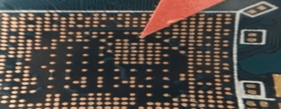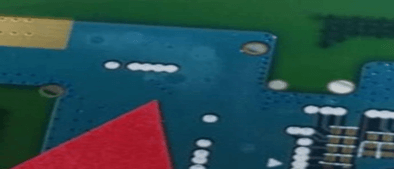 | 塞孔冒油 | 绿油塞孔凸起的高度不可超过锡面或焊盘的绿油面 0.05mm,以切片测量铜面油墨厚度确认 | 冒油位置油墨厚度不允许高出 BGA、IC 焊盘 35um | ![]() | |