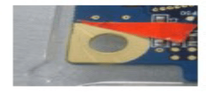 1.所有刮伤导致的绿油脱落不的在焊接区域出现; 2.非焊接区域的露铜点允许不超过导体表面的 10%,但不至于造成短路的危机 3.刮伤油墨未露铜的用 3M 胶带贴紧垂直 90 向上拉起掉油不良不允许在焊接区域区出现,非焊接区域的露铜点允许不超过导体表面的10%,但不至于造成短路的微机 |