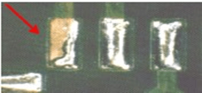 一般SMT Pad周边Side 因附着力引起的露铜NG | |