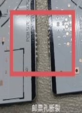 | 爆孔 | 到板边距离小于 2.5mm, 且不超过 1/2 的最近导体与板边的距离 | 定位孔破裂、变形不允收 | ![]() | |